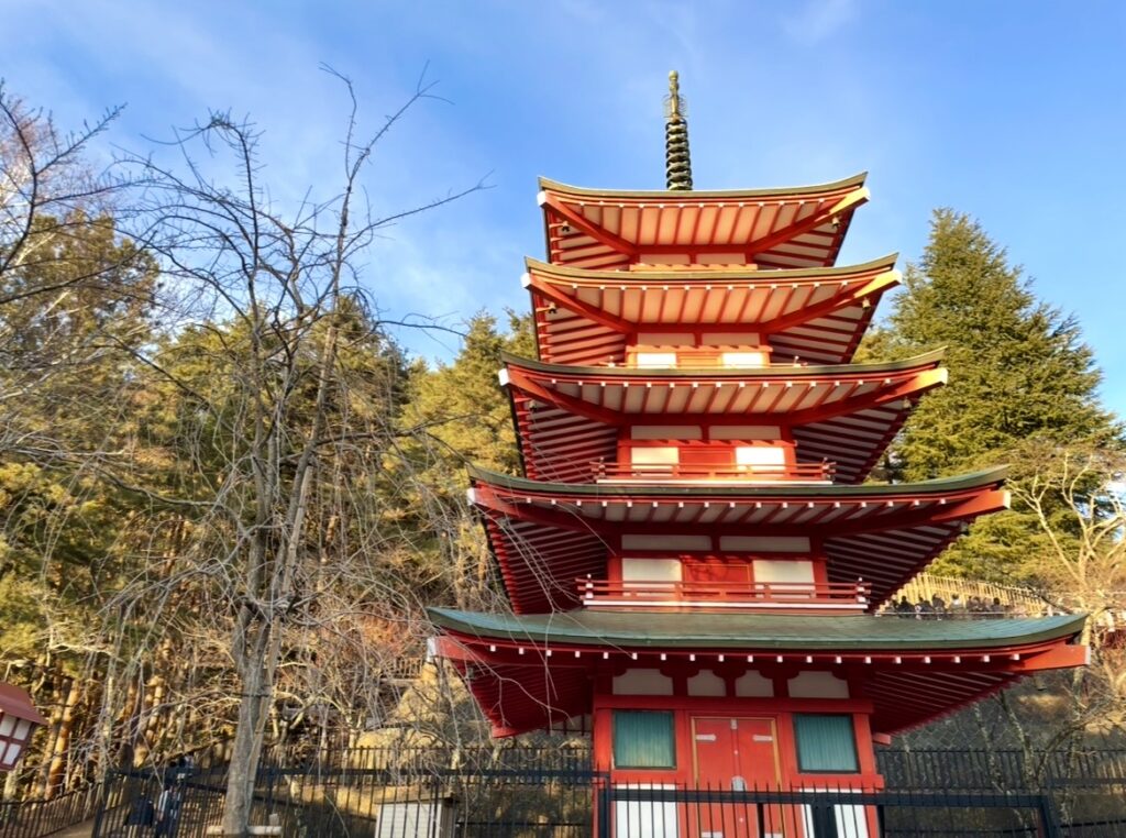 五重塔と富士山、さらに季節によって桜、紅葉、雪景色が織り成す絶景を楽しめる観光スポットで、富士山観光の際に是非訪問したい場所の1つです。
