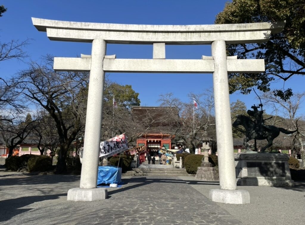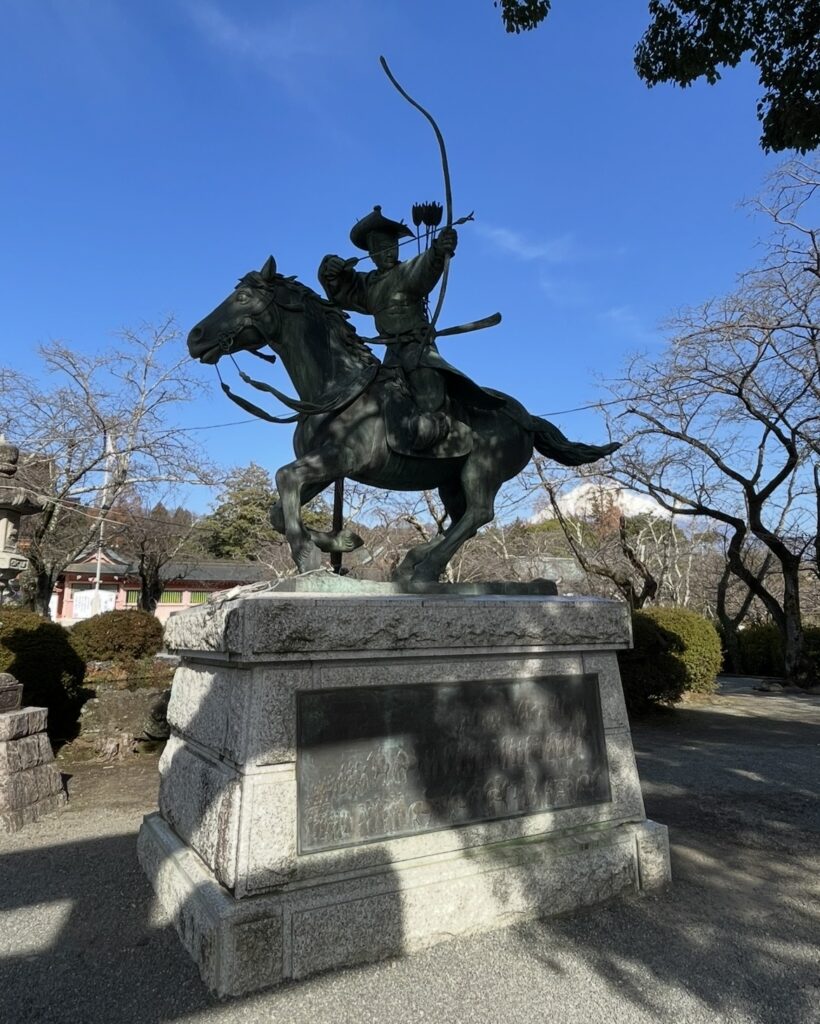 流鏑馬像は表参道を抜けた三之鳥居の右手側にある銅像です。