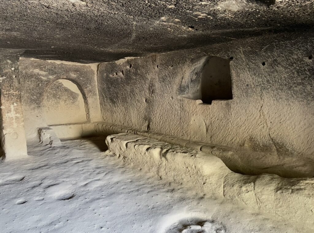 つまり、柔らかい岩を掘って住める地形、外敵から身を守れる谷、そして修道生活に適した静寂が揃っていたということです。