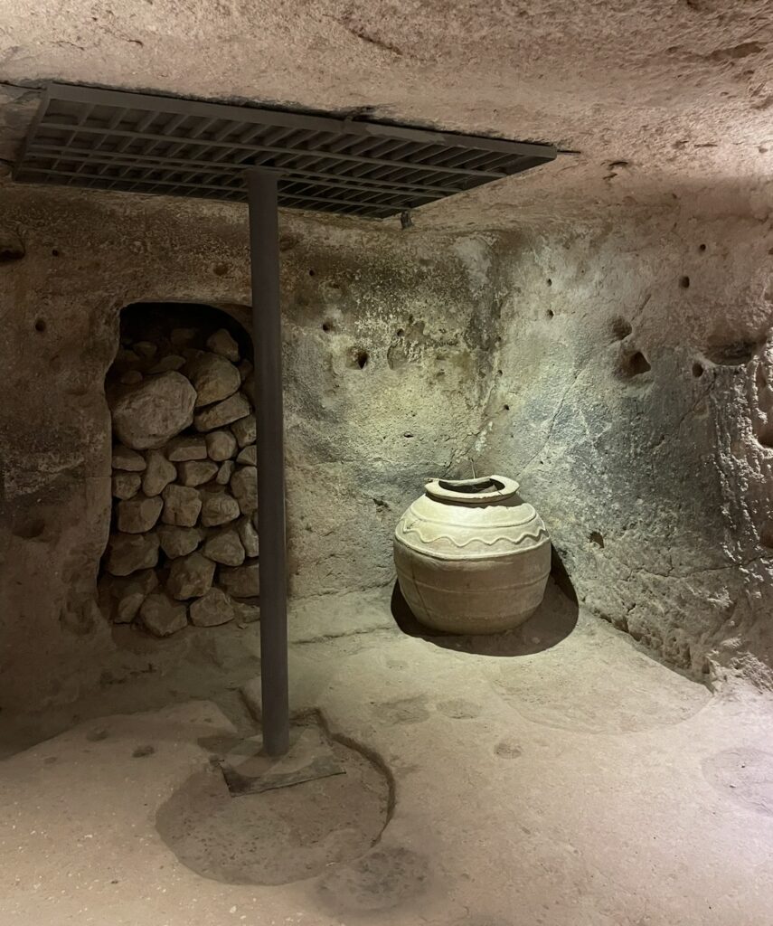 住居・台所・ワイン貯蔵庫・家畜小屋・礼拝所などといった生活に必要な空間がすべて地下に配置され、また敵の侵入を防ぐための巨大な石の扉が設置されていました。