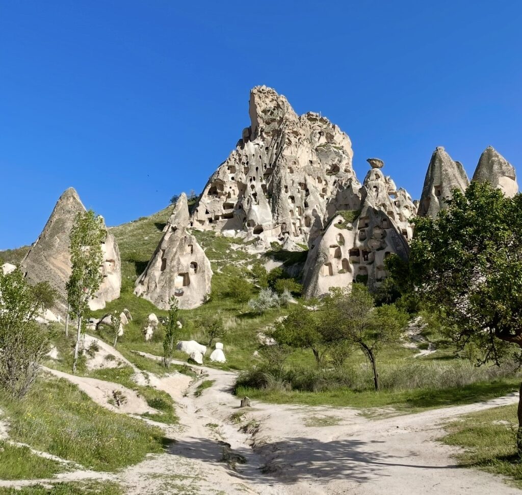 ピジョンバレーは、ギョレメとウチヒサルを結ぶ約4kmの美しい渓谷で、崖に無数に掘られた“鳩の家(ドゥベコット)”が最大の特徴です。