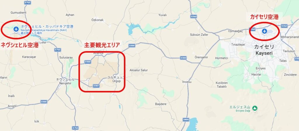 一方でカイセリ空港は、ネヴシェヒル空港と比較してカッパドキアの主要観光エリアまでは離れていますが、便数が多いです。